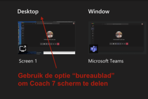Als u voor het online lesgeven met Microsoft Teams werkt, kunt u het Coach 7 scherm delen met uw leerlingen.