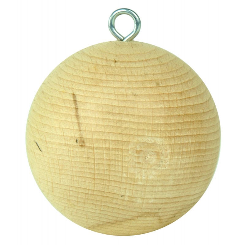 Houten kogel, met haak om aan slinger te bevestigen, D=60 mm