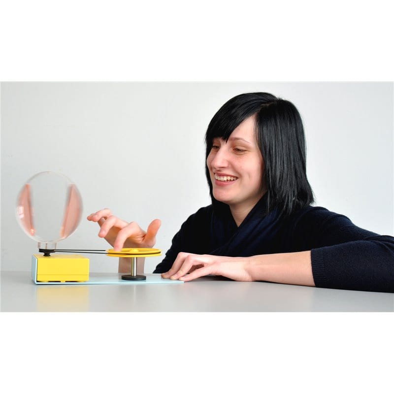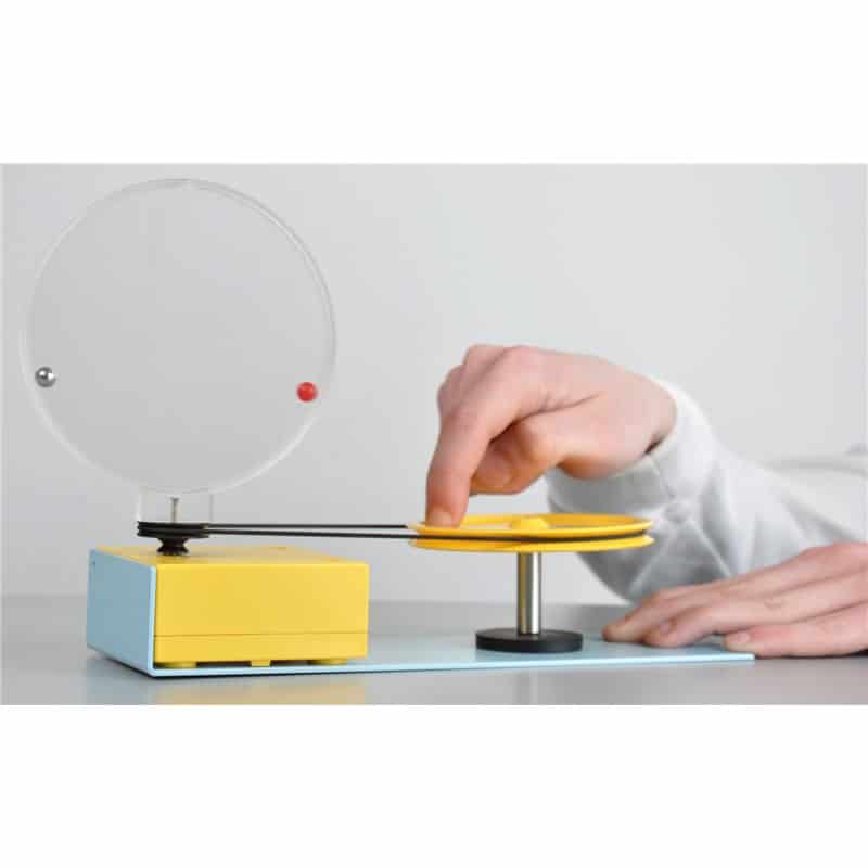 Voor het onderzoeken van de relatie tussen de oppervlaktevorm van roterende vloeistoffen en hun hoeksnelheid (vorming van een parabool), en tevens voor het aantonen van de evenredigheid van de centrifugaalkracht met de massa (twee ballen met verschillende massa stijgen op dezelfde hoogte tijdens het roteren in de cuvet)