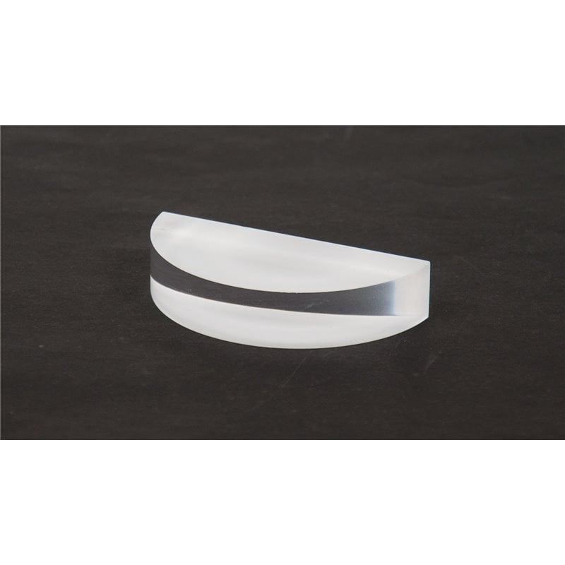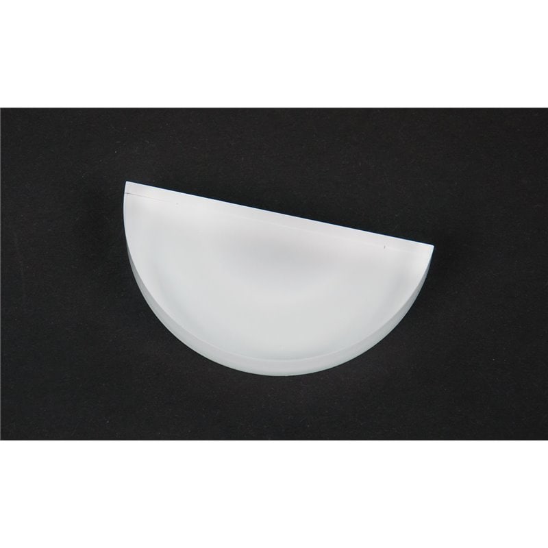 Convergerende lens (halfrond), met opstaande zijkanten hoogglans gepolijst, onderzijde gematteerd voor zichtbaarheid van de lichtweg in de lens.