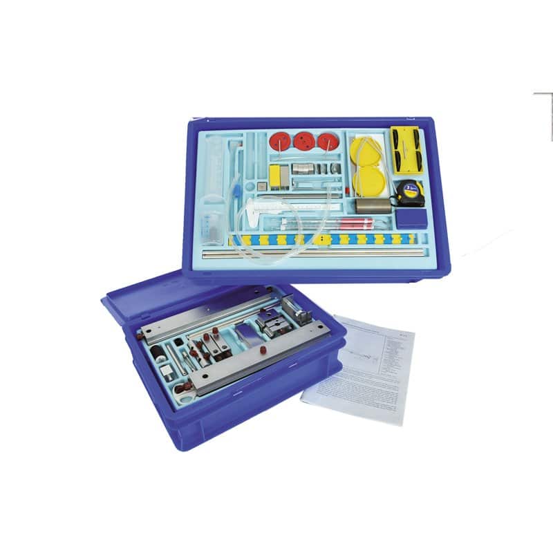 Leskoffer voor natuurkunde practicum lessen met 37 mechanica experimenten over de volgende onderwerpen: