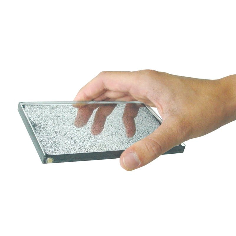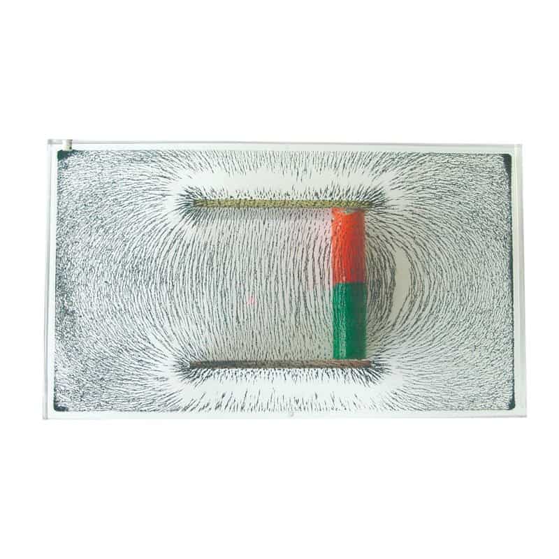 Het ijzervijlsel is in een viskeus medium geplaatst en hermetisch afgesloten in een afgesloten cuvet van acrylglas.
