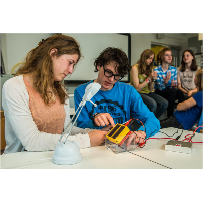 De twee cellen kunnen parallel of in serie worden geschakeld met vier 4 mm-aansluitingen. Voor de aandrijving van een zonnemotor met een propeller of een elektrische auto.