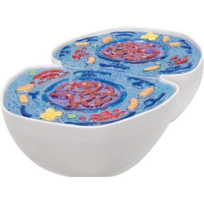 Het drie-dimensionale reliëfmodel toont de volgende 9 fasen van mitose op basis van een typische dierlijke cel: