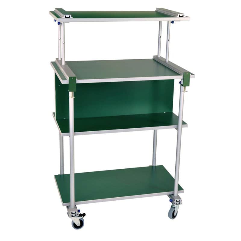 Kan op het bureau van de docent worden geplaatst of bovenop de rolwagen worden verplaatst en met klemmen worden vastgezet. Voorzien van kabelgoten aan de zijkanten.