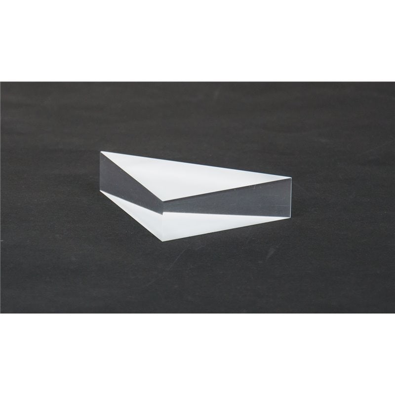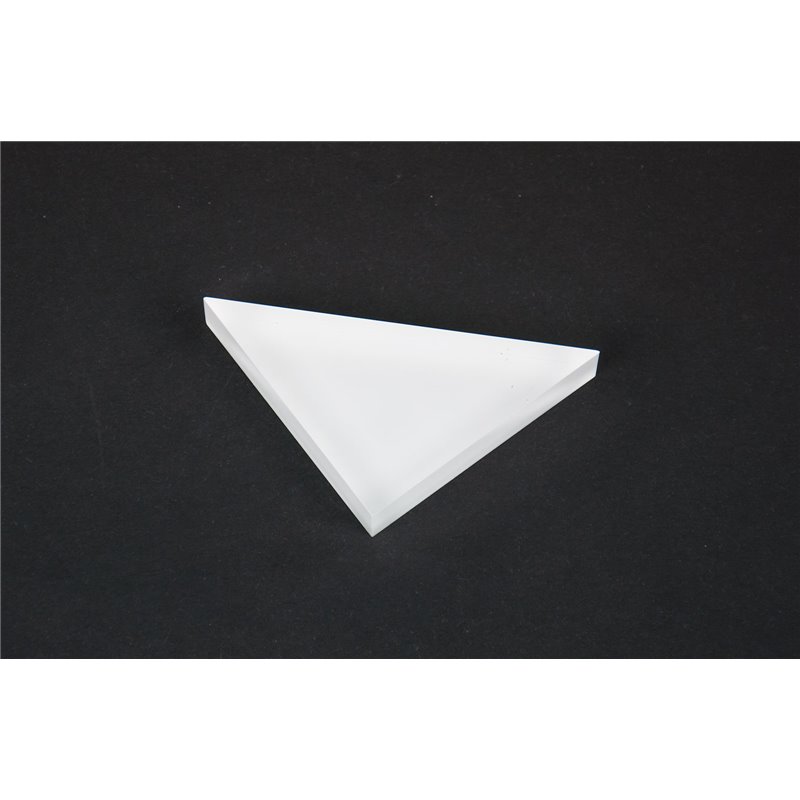 Prisma met één hoek van 90 graden, voor optica practicum over lichtstralen, invalshoeken en brekingshoeken, brekingsindex, en kleuren.