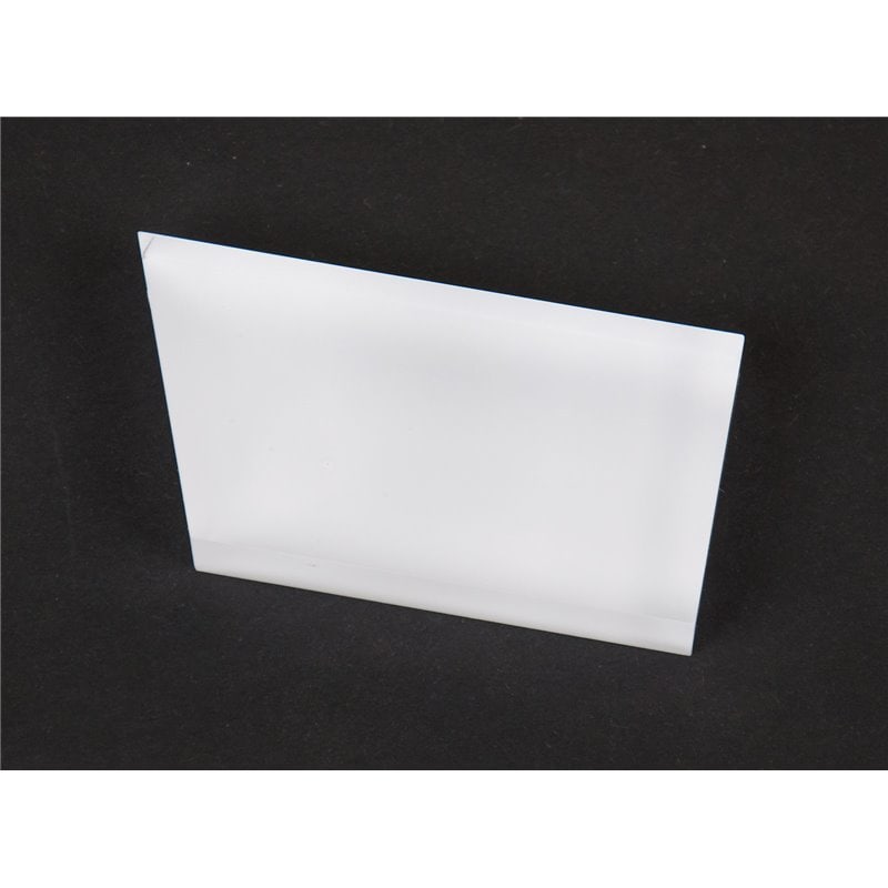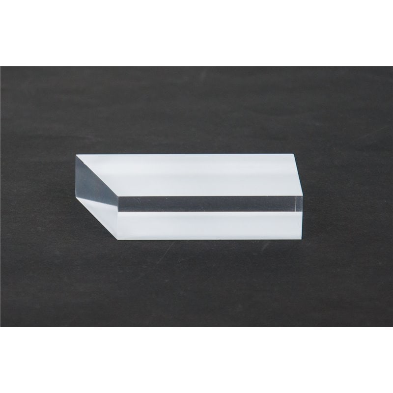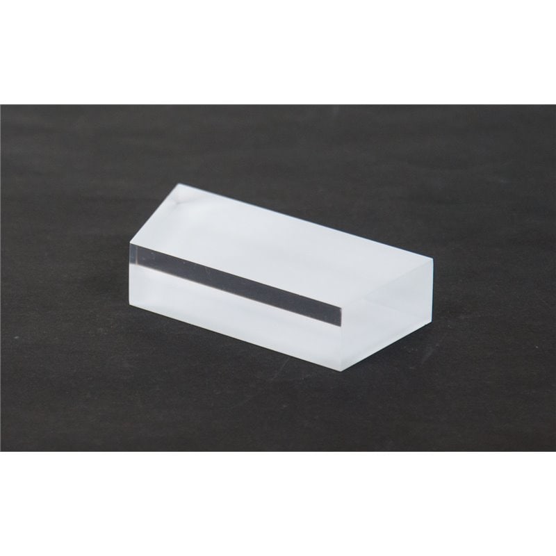 Lens, trapezium met één zijde rechthoekig, de andere trapeziumvormig. De opstaande zijkanten hoogglans gepolijst, onderzijde gematteerd voor zichtbaarheid van de lichtweg in de lens.