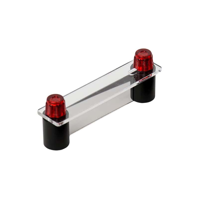 De verstelbare spiegel bestaat uit een flexibele spiegelfolie gemonteerd tussen twee kolommen; de afstand tussen de kolommen kan worden aangepast en vergrendeld, waardoor concave of convexe spiegels met elke brandpuntsafstand te maken zijn.