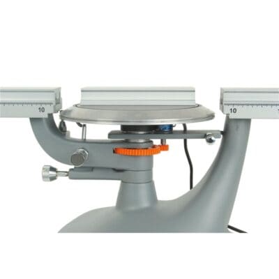 - Hoekschaal, D = 170 mm, onafhankelijk van de zwenkarm draaibaar en vergrendelbaar, met noniusaflezing, bruikbare hoek: minimaal 70,0 … 310,0°