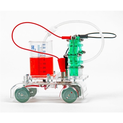 Elektrische waterstof auto met een omkeerbare PEM-brandstofcel en waterstoftank. Ideaal voor natuurkunde practicum over hernieuwbare energie, brandstofcel, waterstof e.d. Dankzij het eenvoudige, open en transparante ontwerp zijn de productie van waterstof en het gebruik ervan om de elektromotor van de auto aan te drijven eenvoudig te begrijpen.
