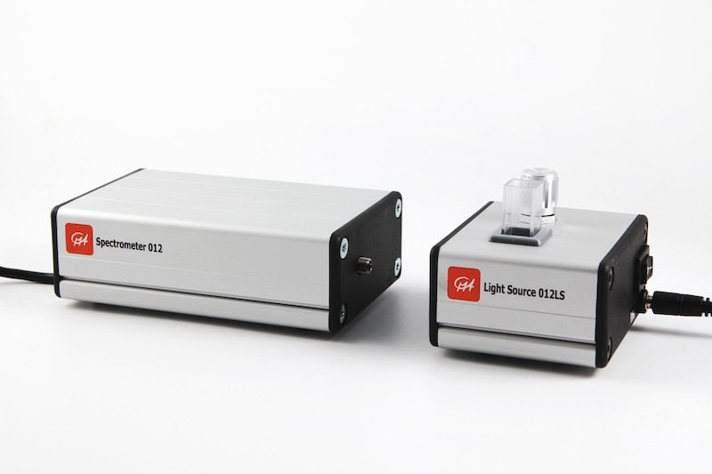 Met de CMA-spectrometer kunnen absorptiespectra van oplossingen worden geregistreerd en geanalyseerd. Bijvoorbeeld van Chlorofyl.